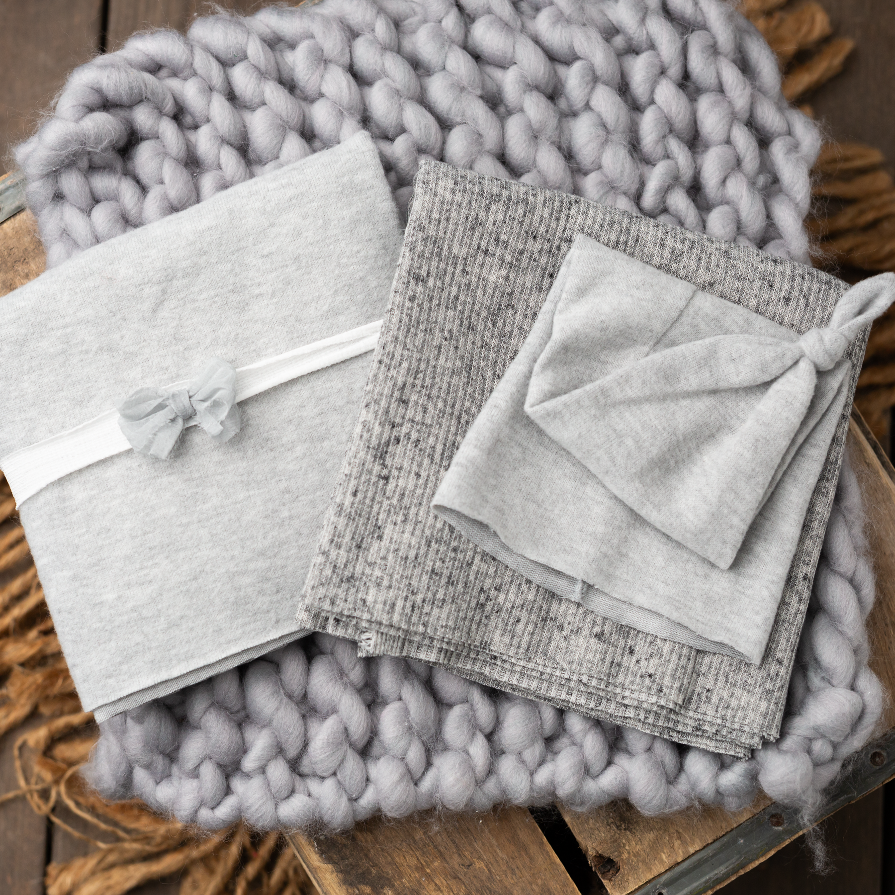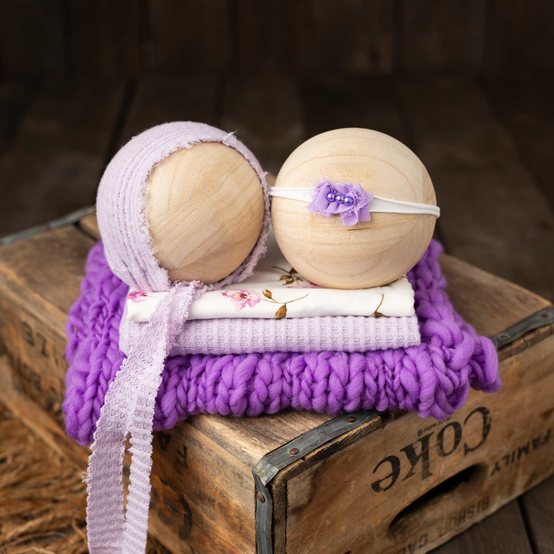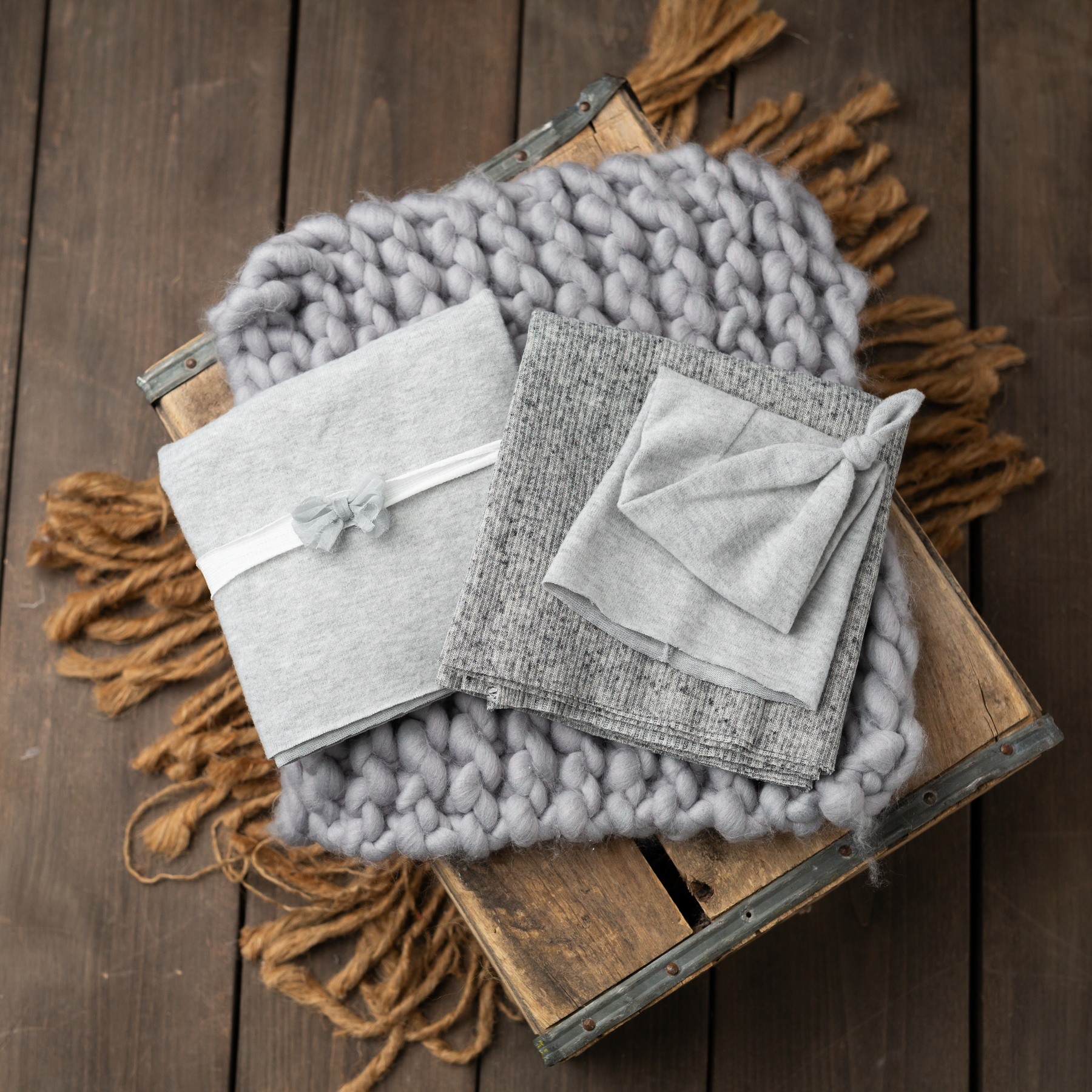 Add a touch of elegance to your newborn sessions with this newborn romper. This grey outfit has a subtle purple undertone with a gentle, neutral feel that photographs beautifully in newborn setups. Crafted from soft, stretchy fabric that feels gentle on delicate skin, this timeless piece features long sleeves and sweet wooden button details for a look that is classic yet modern.